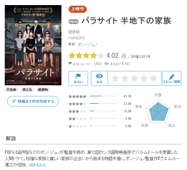 '기생충' 그리고 '날아라 사이타마' 야후 영화 평점 비교