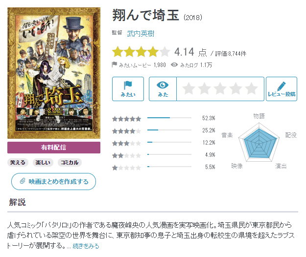 일본 영화 날아라 사이타마의 야후 평점이 비교 되어 화제가 되고 있다.