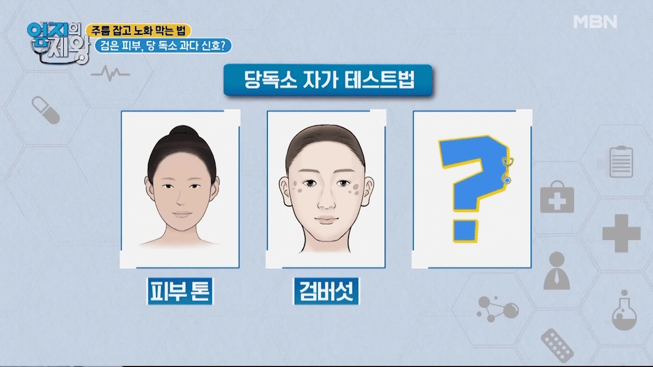 원래 까만 피부 말고 얼굴이 원래 자기피부 보다 더 어두워지면 당독소가 과다하다는 신호라고 합니다.