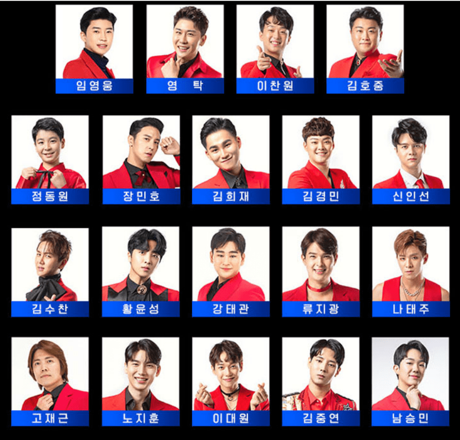 임영웅, 영탁, 이찬원, 김호중, 정동원, 장민호, 김희재, 김경민, 신인선, 김수찬, 황윤성, 강태관, 류지광, 나태주, 고재근, 노지훈, 이대원, 김중언, 남승민