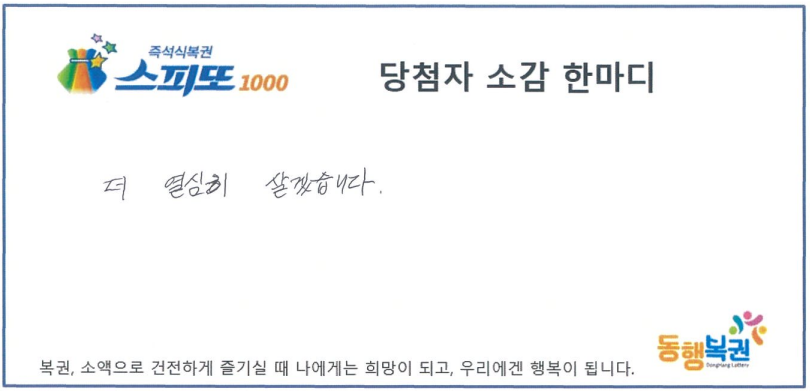 스피또 즉석식 복권, 연금복권 당첨자 소감 모음